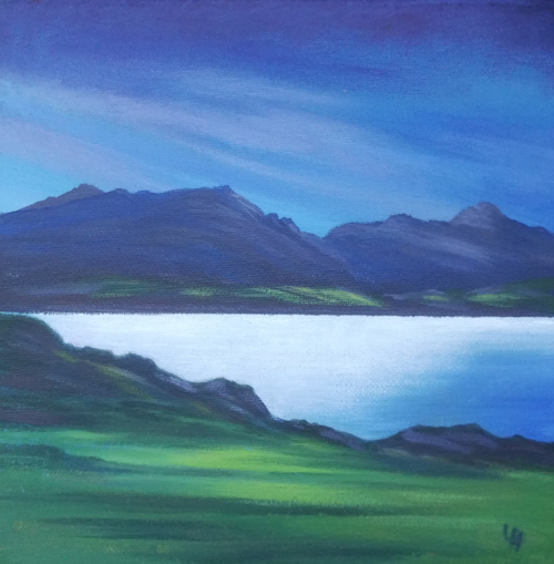 Arran from DunagoilAcrylic on canvas, 20x20cm