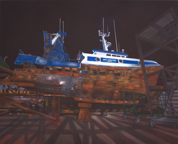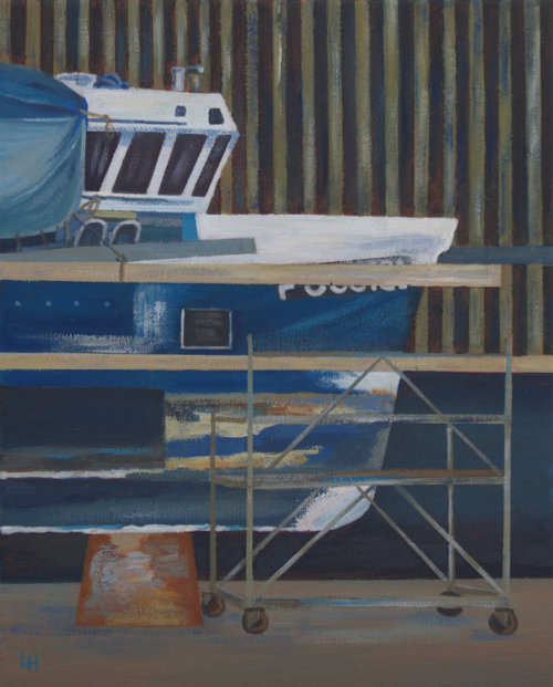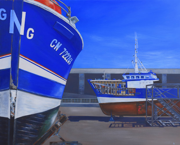 Boat Repairs, Port-en-BessinAcrylic on canvas, 30x24cm