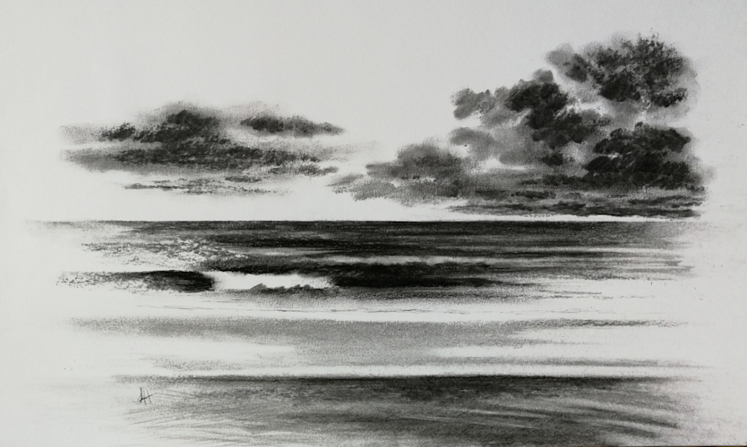 Rolling Waves, Omaha BeachGraphite on paper, 30x40cm