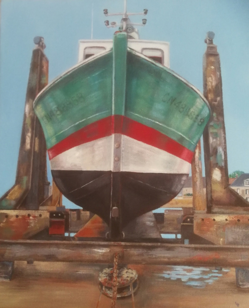Boat Repairs, Port-en-BessinAcrylic on canvas, 30x24cm